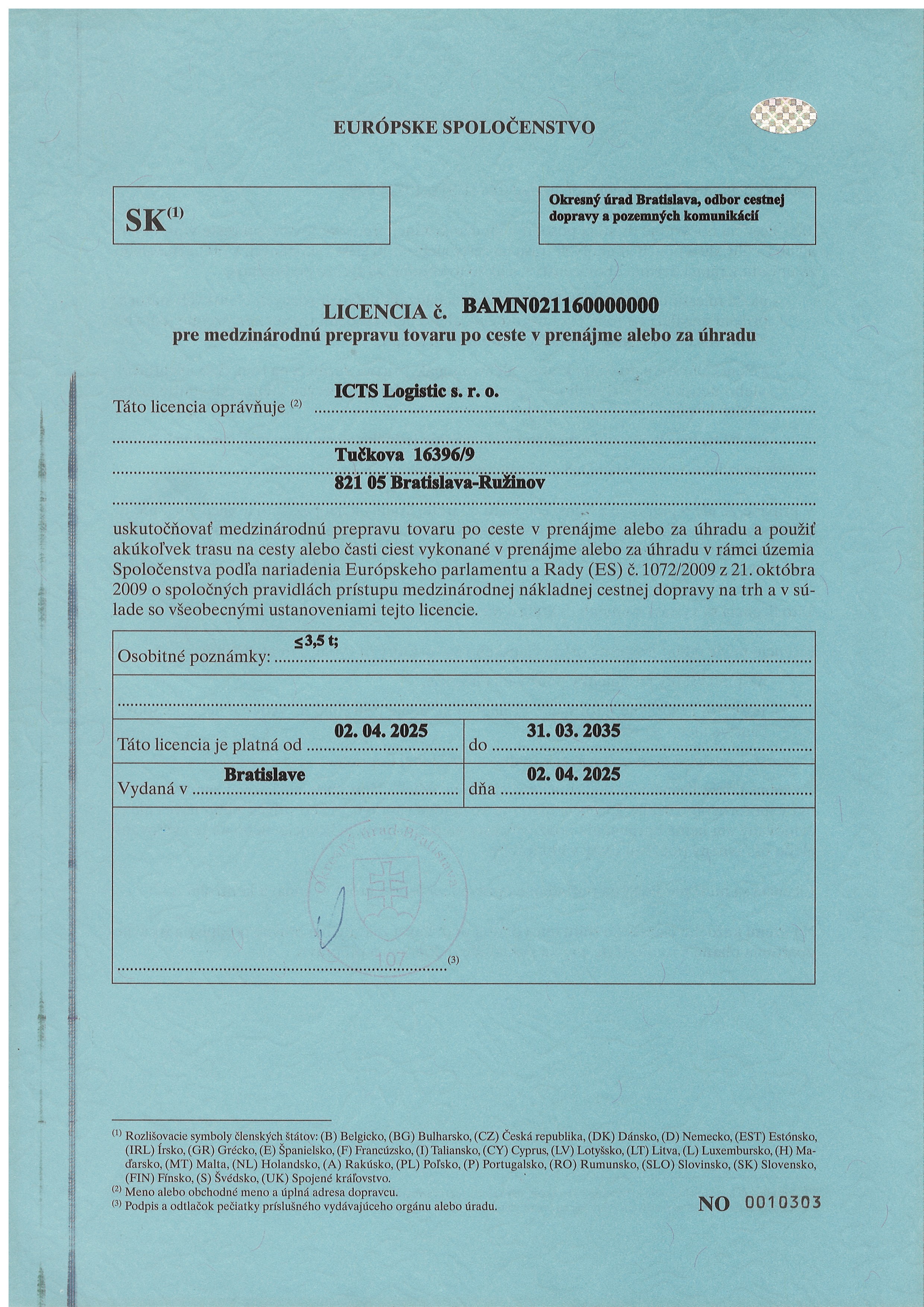 EU license for international transport – page 1
